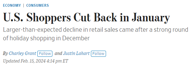 Data reveals a 0.8% drop in retail sales over the past month, equating to a near 10% annualized decline, a decline not seen since the COVID-19 lockdowns.