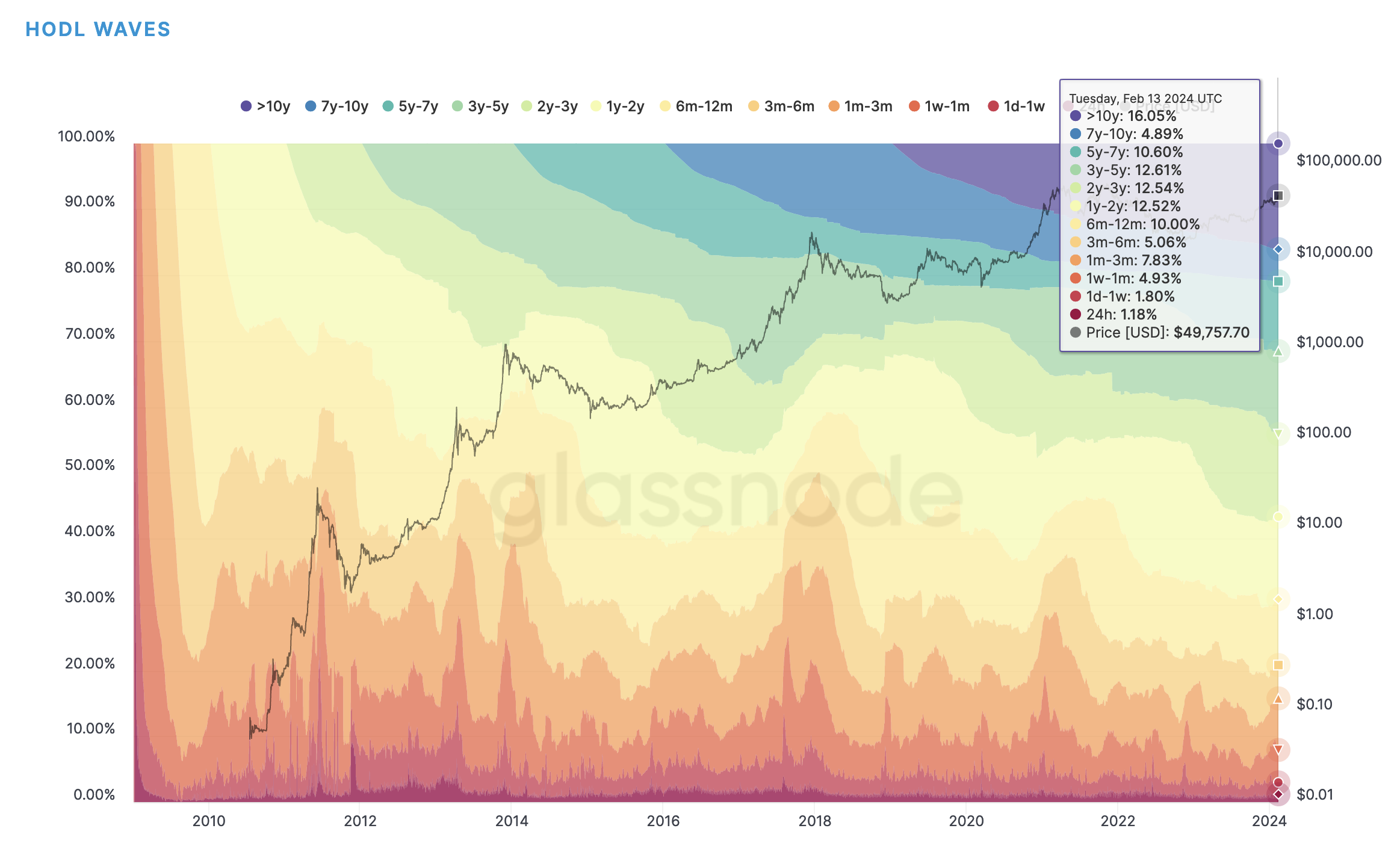 Put another way, all of the money flowing into ETFs and into direct (proper) bitcoin exposure will be find it increasingly hard to source newly distributed bitcoin. They will have to hope that people already holding bitcoin decide to part ways with their holdings. Unfortunately for them, more than 70% of bitcoin hasn't moved in more than one year with ~45% remaining dormant for more than 3 years.