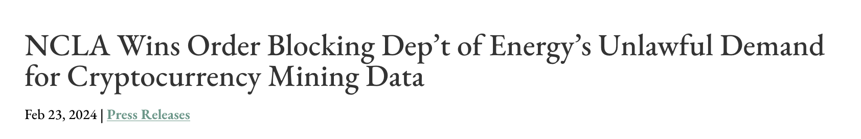 At the time, I encouraged everyone in the industry to tell the EIA to screw off due to the egregious encroachment on civil liberties the registry represents. Luckily for us, many operators in the industry agreed with this sentiment and Riot decided to push back alongside the Texas Blockchain Council by suing the Department of Energy and initiating a halt on the data collection. Claiming that the Department of Energy did not provide adequate notice before demanding that operators hand over extremely sensitive information to the EIA.
