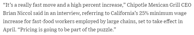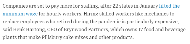 Businesses are facing higher costs due to increases in minimum wage laws in several states, which in turn leads to higher prices for goods and services. This can create a cyclical effect where consumers, especially those in lower-income brackets, are further pressured by price increases in essential goods such as food.