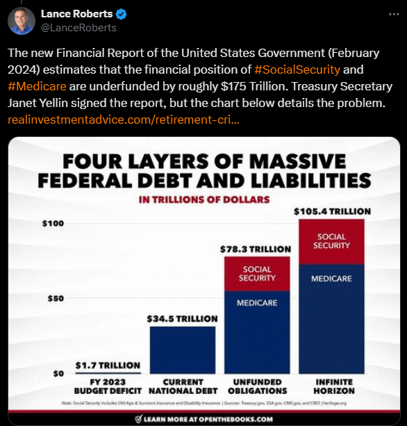 As Americans look towards their future, a sobering revelation from the U.S. Treasury Secretary, Janet Yellen, casts long shadows over the prospect of a secure retirement. According to the latest financial report released by the United States government, Social Security and Medicare face a staggering underfunding of $175 trillion. To put that into perspective, that amounts to approximately $1.4 million per household, dwarfing the median household net worth in the U.S., which stands at a mere fraction of this figure.