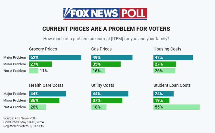 The survey further highlights the widespread concern over rising costs, with 84% of participants indicating that gas prices pose a problem for their family, including 49% who see it as a major problem. Grocery prices are of even greater concern, with 89% finding them problematic and 62% labeling them a major issue. Other areas of concern include health care, utility costs, and housing costs.