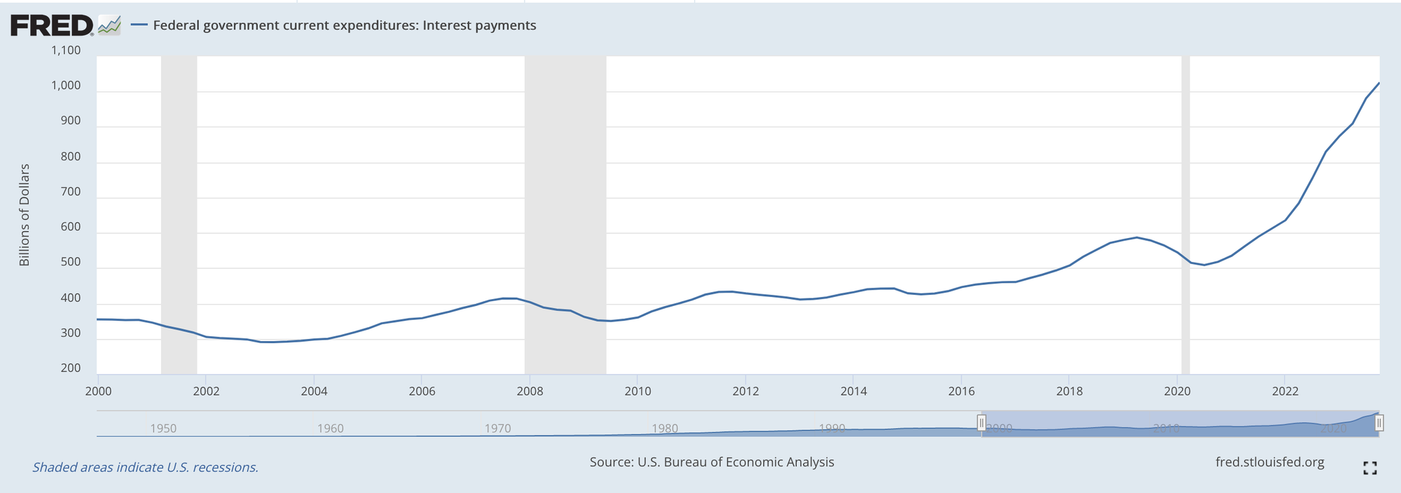 Think the deficit, debt, and interest on that debt don't affect you? 44% of your income taxes this fiscal year have been consumed by just interest on the debt.