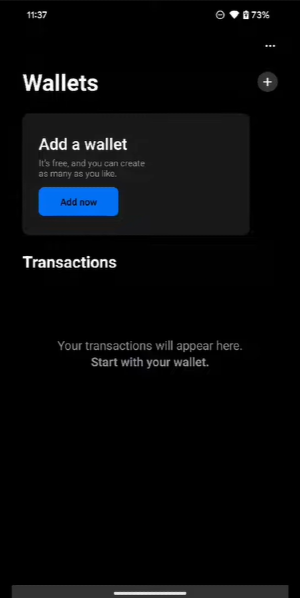 Tap on "Add now" to create a new wallet.