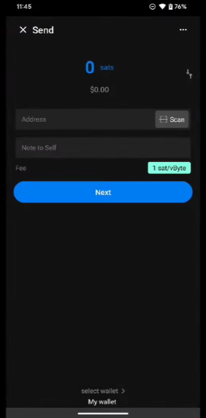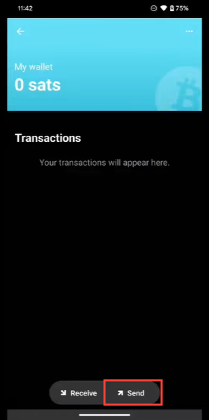 Tap the "Send" button at the bottom of the wallet.