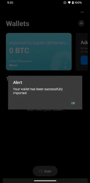 Confirm the import, and your wallet, with all its transaction history, will be restored.