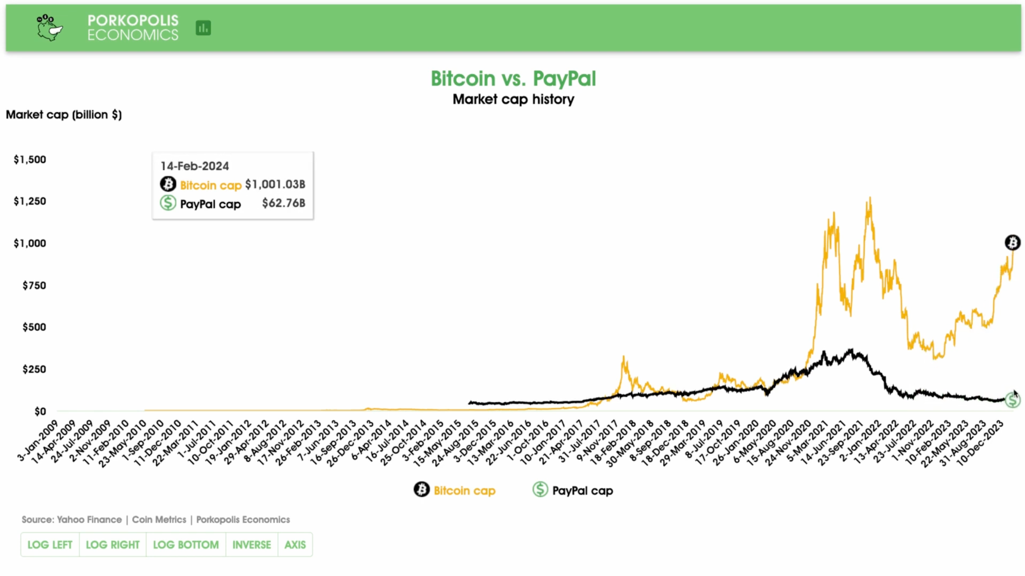 Assessing the market capitalization offers another perspective on the growth and acceptance of these payment platforms. By 2024, Bitcoin's market capitalization had once again reached over $1 trillion, showcasing its resilience and growing acceptance as a store of value and medium of exchange. PayPal, in contrast, had a market capitalization of approximately $63 billion, reflecting its stable but comparatively less explosive growth trajectory.