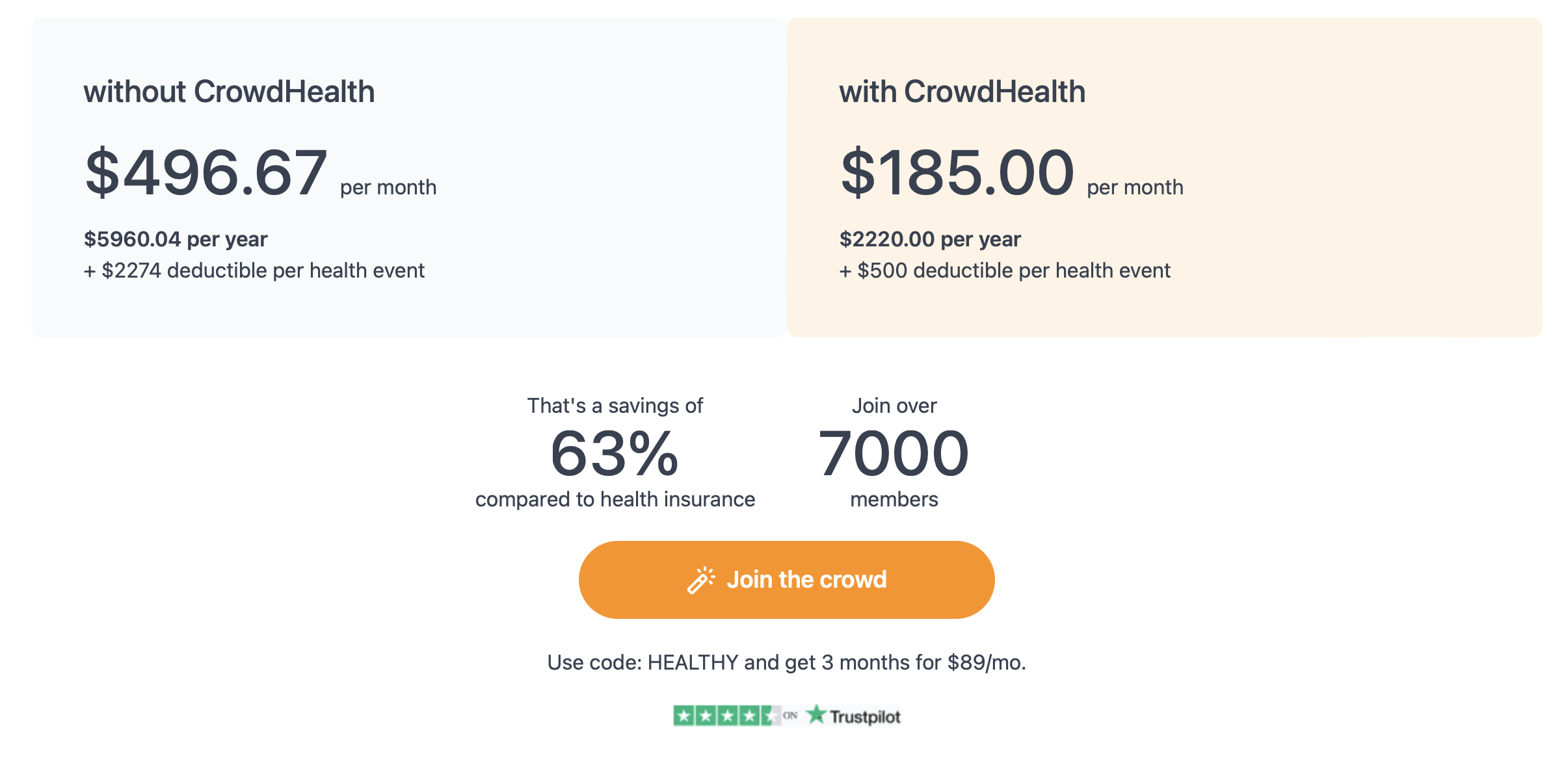 CrowdHealth allows you to manage health costs more predictably. You pay a fixed monthly amount and only fund the first $500 of any health event over $500. This can simplify budgeting.