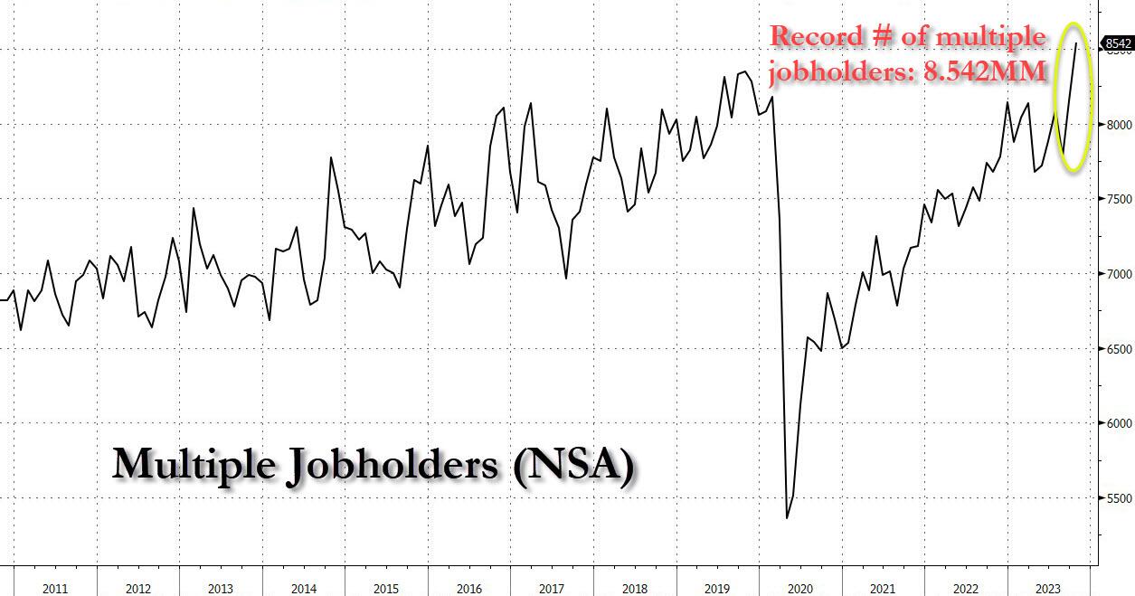 We'll start with the jobs market where the number of multiple jobholders in the US hit a new record high with 8.5m+ Americans working multiple jobs to stay afloat.