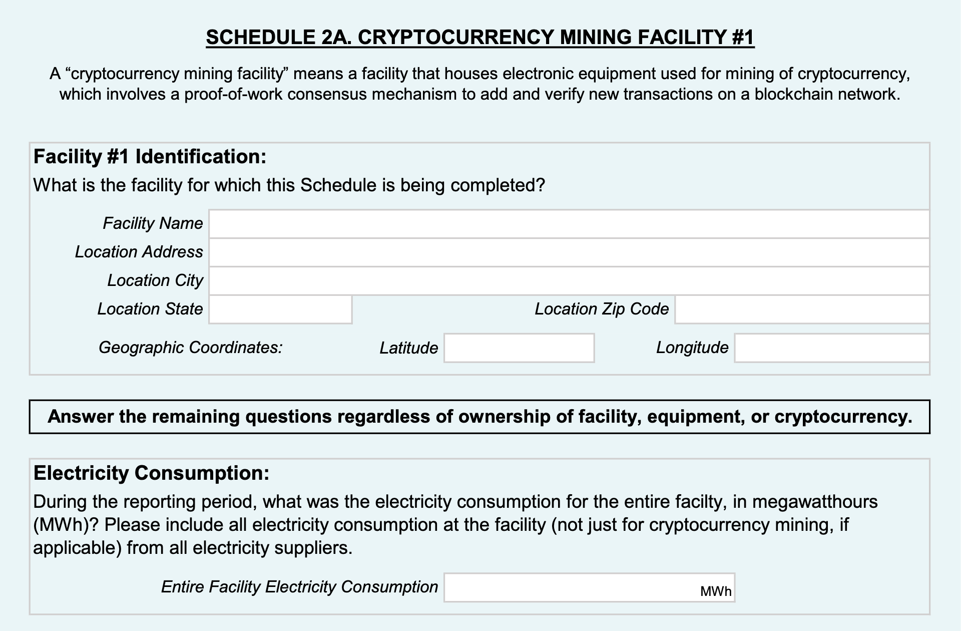 From there they will have to disclose the percentage of the facility's electricity consumption that was used specifically for mining and doxx their electric service provider.