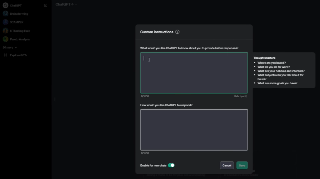 One of the most potent yet often overlooked features of ChatGPT is the ability to provide custom instructions. This personalization allows for tailored responses that align with your specific needs and preferences. By navigating to your profile and selecting 'Custom Instructions', you can input information about yourself and dictate the style and format of ChatGPT's responses. For instance, you could inform ChatGPT that you have 20 cats, and henceforth, it will incorporate that knowledge into relevant conversations. The use of custom instructions can refine the AI's outputs, ensuring that the guidance you receive is as pertinent and useful as possible.