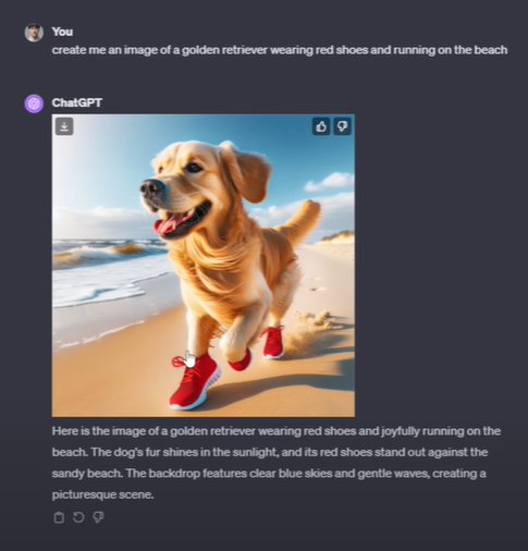 DALL-E 3 within ChatGPT can generate images from text prompts, offering a creative outlet for visual content. Whether you need an image for a business project or social media, this feature can produce unique and relevant artwork based on your specifications with just a few keystrokes.