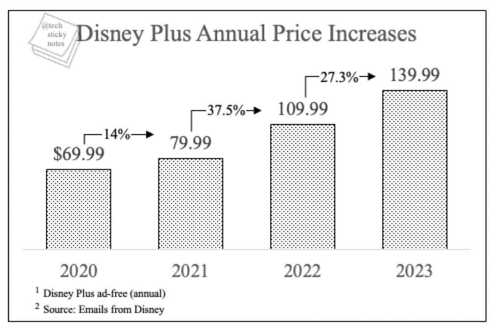 Yes. You read that correctly. The cost of Disney+ is up 100% since 2020.