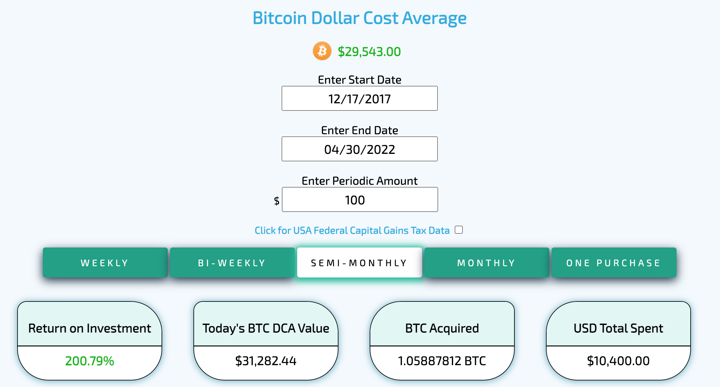 Talk about superior savings technology! And for those of you skeptics out there seething because bitcoin was trading at $250 near that cycle's bear market lows on January 1st, 2015 , here's what it would look like if you began saving $100 worth of sats per paycheck beginning at the bull market top of late 2017.
