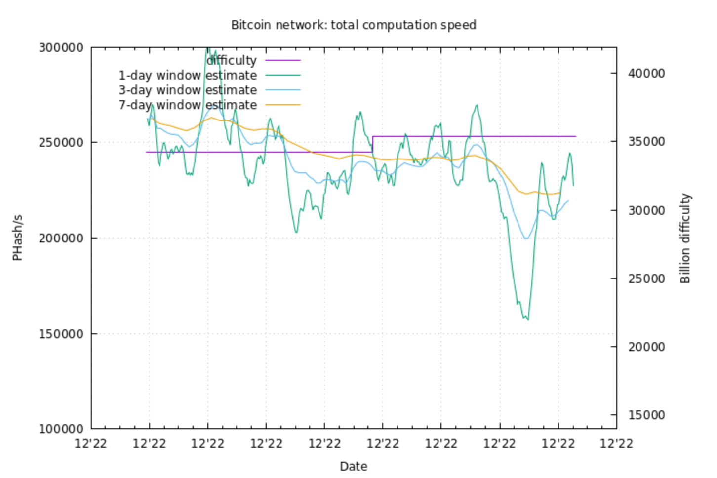 Lastly, a factor that may have contributed to a fall in hashrate but is not directly connected to the weather is bankruptcies throughout the industry. We touched on this a few weeks ago. With the price of bitcoin being significantly depressed over the course of this year miners are feeling the pain, and many are in the express lane on the way to insolvency. Last week Core Scientific filed for Chapter 11 bankruptcy. However, they announced that they will keep their ASICs up and running as they wade through their bankruptcy proceedings. With Core it is important to note that even though they plan on keeping their machines on, almost half of their hashrate under management (at least earlier this year) is owned by hosting customers. Even though Core plans to continue mining themselves, it would not be surprising to learn that many of their hosting customers have decided to unplug due to the increase in electricity costs announced in late October coupled with the uncertainty that can come with your hosting provider filing for bankruptcy. I imagine there are a number of other sizable miners who are approaching bankruptcy as we near the end of the year. Whether or not they will decide or even be able to continue mining in the event of a bankruptcy is yet to be seen. Depending on what the individual outcomes are, this could exacerbate the decline in hashrate as we head into 2023.