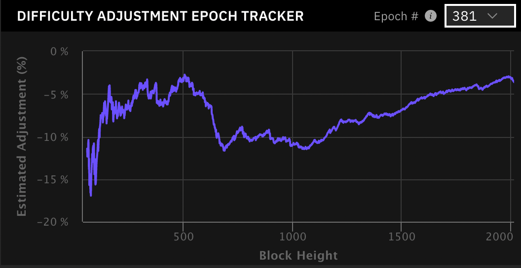 As temparatures rose, demand for electricity fell, and the demand response services of miners across the US was no longer needed they turned their ASICs back on and block production began coming in closer to the ten-minute target. When difficulty epoch 381 reached its 2,016th block the overall effect demand response proved to have on block production was relatively minimal. If the arctic blast lasted longer and miners were forced to remain turned off because of sustained high demand from the grid, the difficulty would have had a more pronounced downward adjustment and the network would continue to operate withtout any problems. This process is truly awe inspiring.