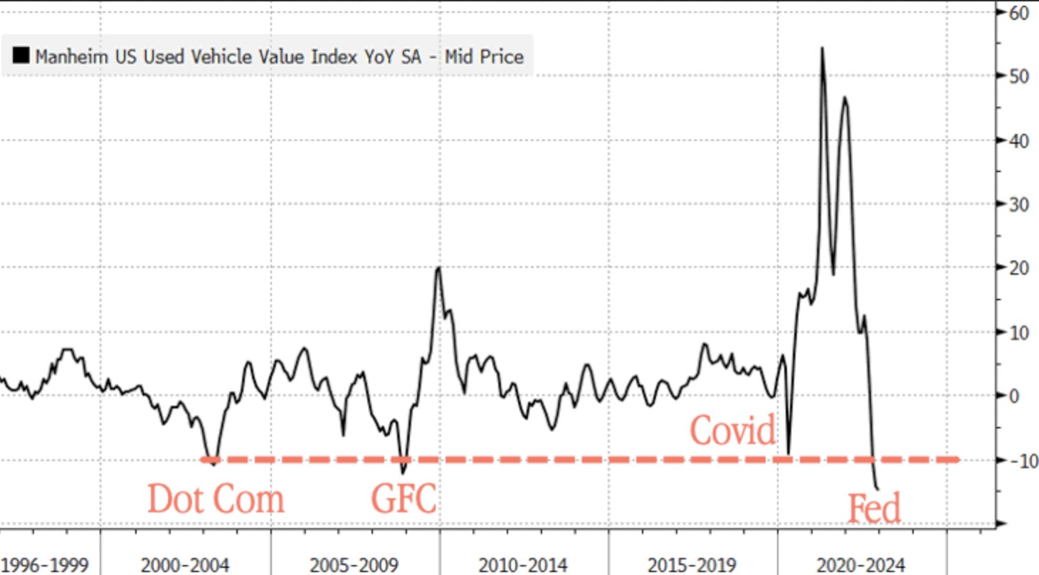 Second up, used car prices are beginning to correct materially as interest rates continue climb.