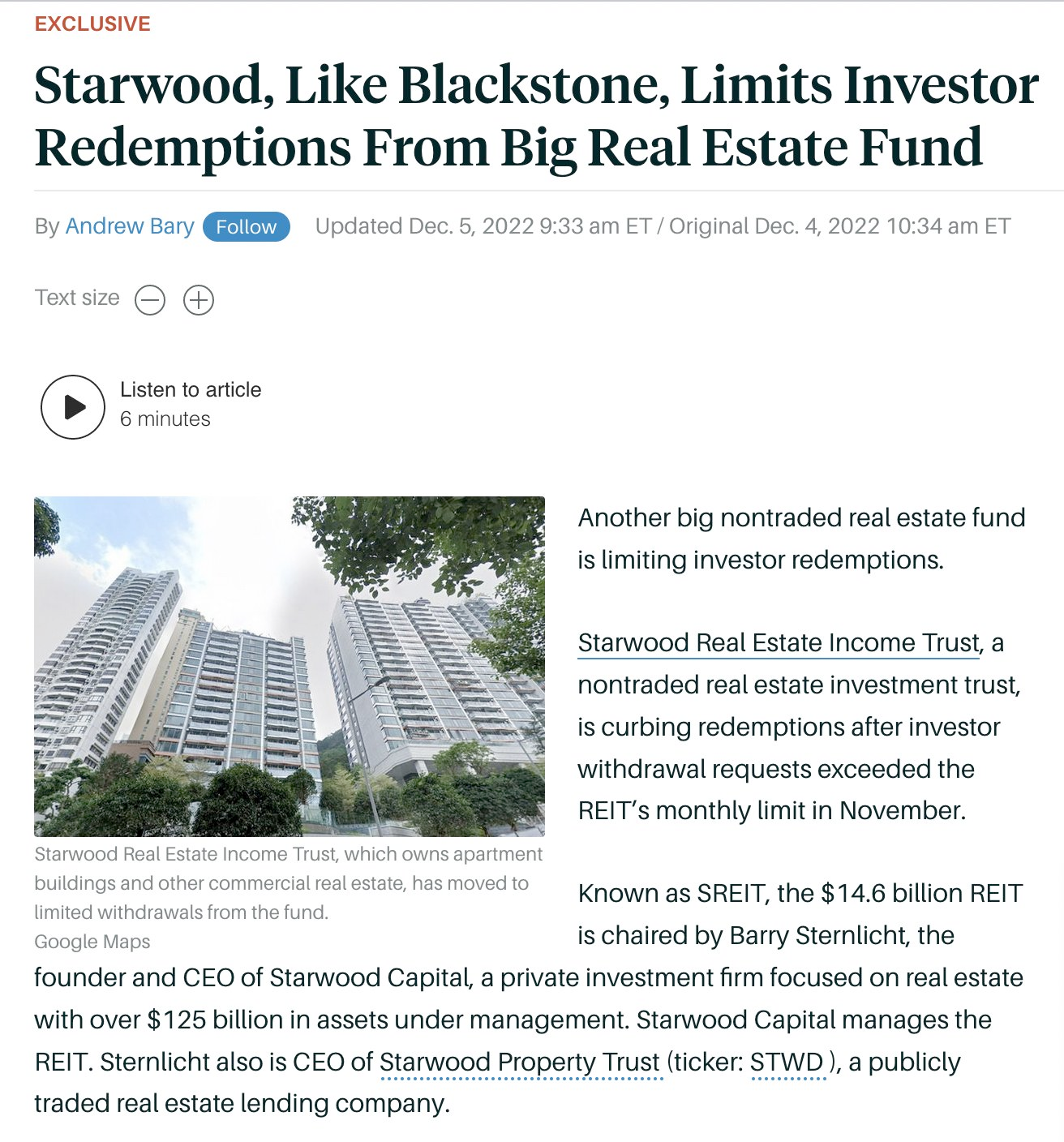 We'll start with commercial real estate, particularly nontraded REITS.
