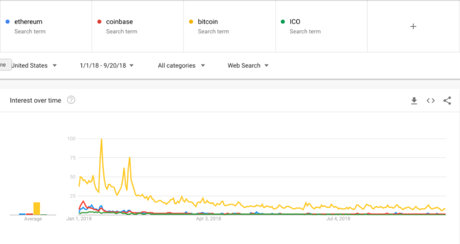 As we can see from the Google Trends chart above, retail and institutional investors alike have lost a considerable amount of interest in Bitcoin and cryptocurrencies in general. I bet this is because of how ridiculous the hype and promises were during last year's mania coupled with the lack of results and actual working products this year. All hump and no red rocket. This disinterest will probably continue until people begin to see the true value of the only thing that actually works as marketed in this space, Bitcoin. Once Bitcoin becomes a go-to tool (among many) for people struggling in emerging markets with weak currencies or oligarchs looking to preserve wealth and avoid capital controls, I believe we'll see interest piqued again. Until then, enjoy the doldrums of the bear market.