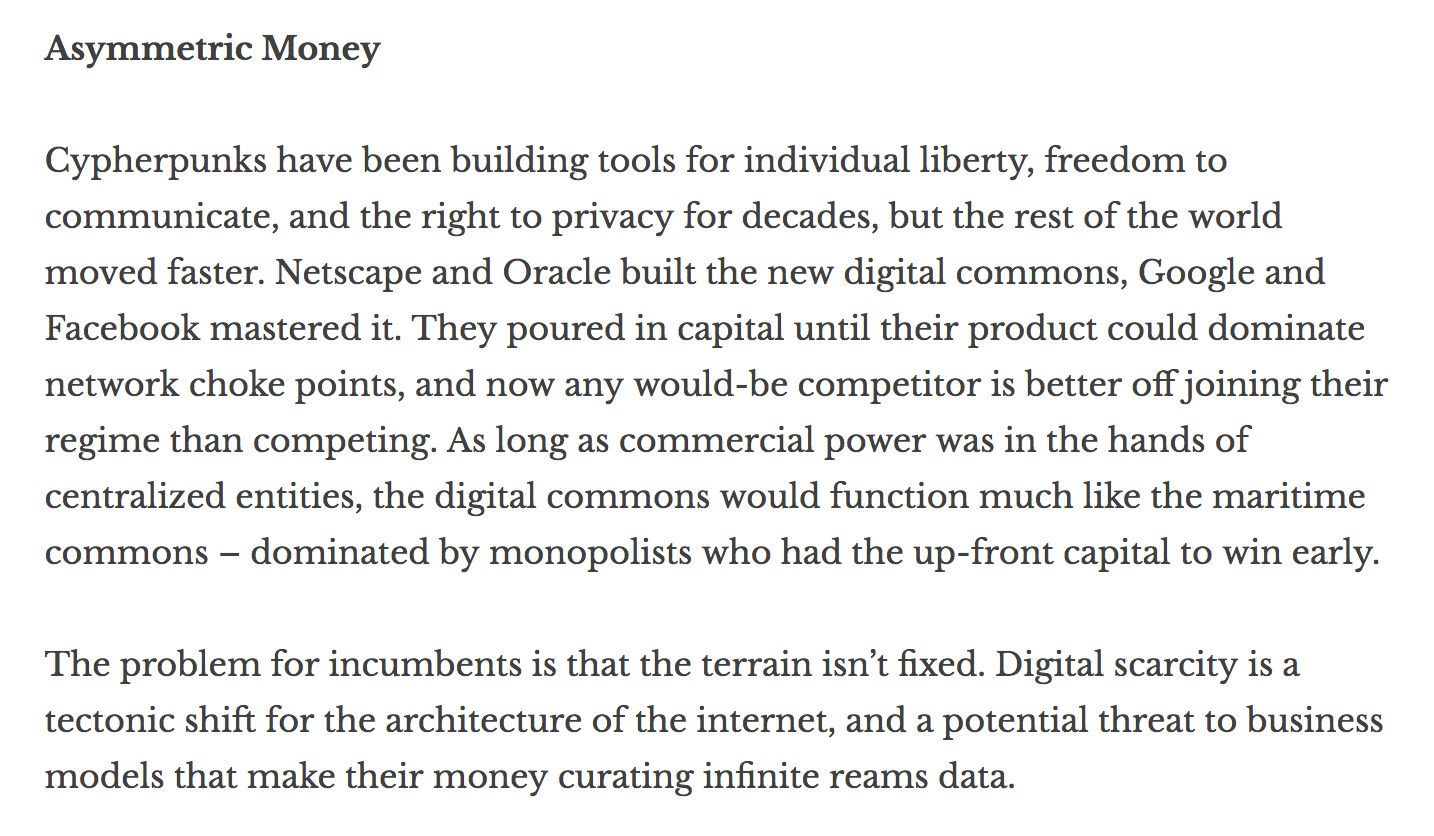 Piggybacking on yesterday's issue I thought it would be a good idea to share this post from our friend Hector Rosekrans, in which he explains to us how Bitcoin is a weapon because it unlocks the power of asymmetric cryptography.