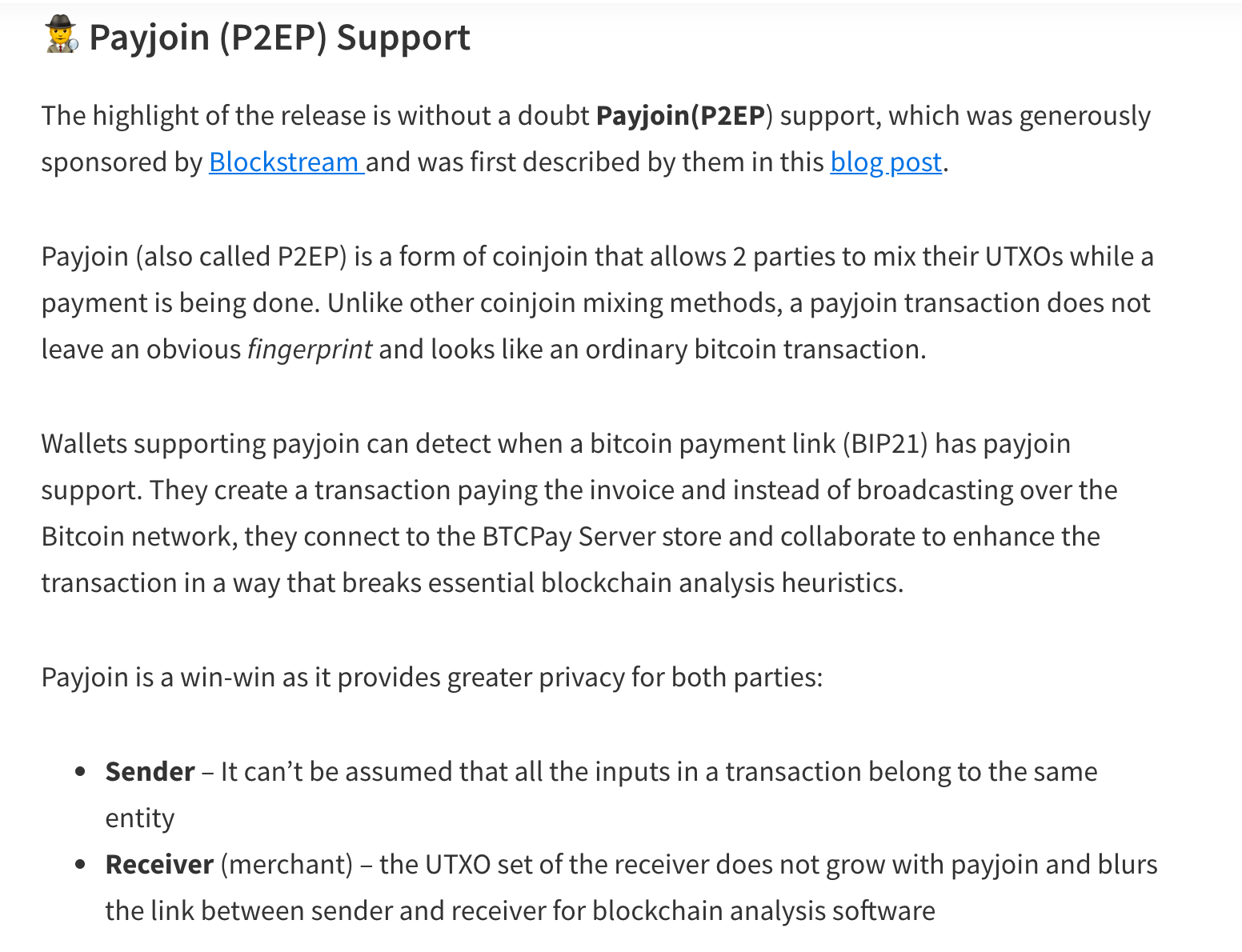 In my opinion, this has the potential to be a MASSIVE boon for bitcoin privacy. If merchants are able to implement a P2EP (pay to end point) set up with ease, it will automatically increase the amount of transactions that are coinjoins, which in turn increases the anonymity set of the users involved and helps the network overall get closer to a threshold at which it becomes extremely hard for chain analysis companies to rely on the heuristics they use to deanonymize individuals using bitcoin.