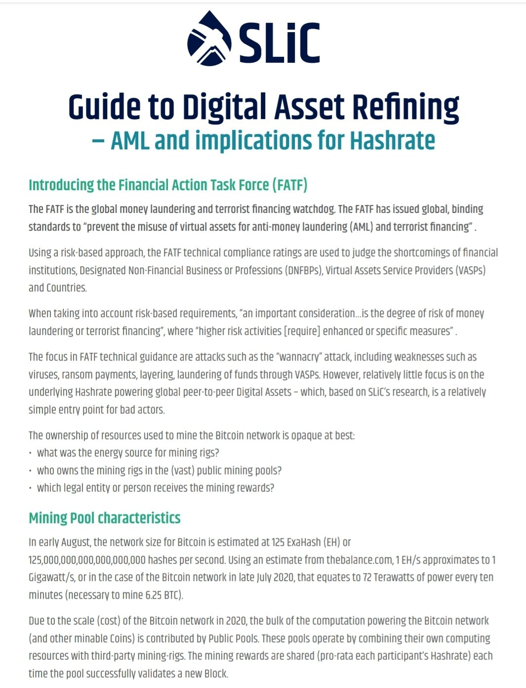 I was leaning towards avoiding the story all together today because this particular initiative that is attempting to push this unnecessary regulation on miners is being pushed forward by, frankly, stupid people. They honestly do not grasp what is going on in the mining world, as is evidenced by the screenshot above in which they claim that "1 Eh/s approximates to 1 G/s" of energy consumption. The crew at SLiC is honestly too mentally deficient to make their case that mining pools should be KYC'd. However, despite this particular initiative's mental shortcomings, it is inevitable that an initiative that appears more competent and is able to convince the correct connected cronies that KYC'ing individual miner within pools is a good idea comes along.