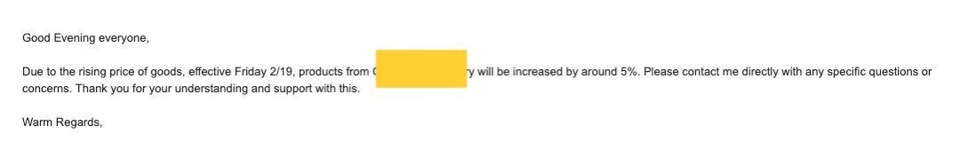Not true. My parents run a coffee shop in our home town and my dad has been forwarding me emails since the start of the year about price increases that have been passed down to his business and their customers.