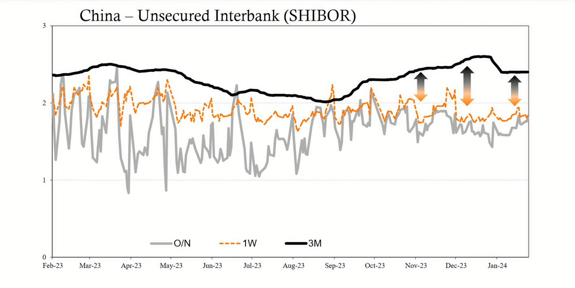 Assessing the situation on a scale of calm to disorderly unwind, the recent actions by Chinese authorities suggest a shift from moderate concern to a higher level of alert, potentially moving from a level five to a six or seven, given the lack of economic response to stimulus efforts and the real estate market's difficulties.