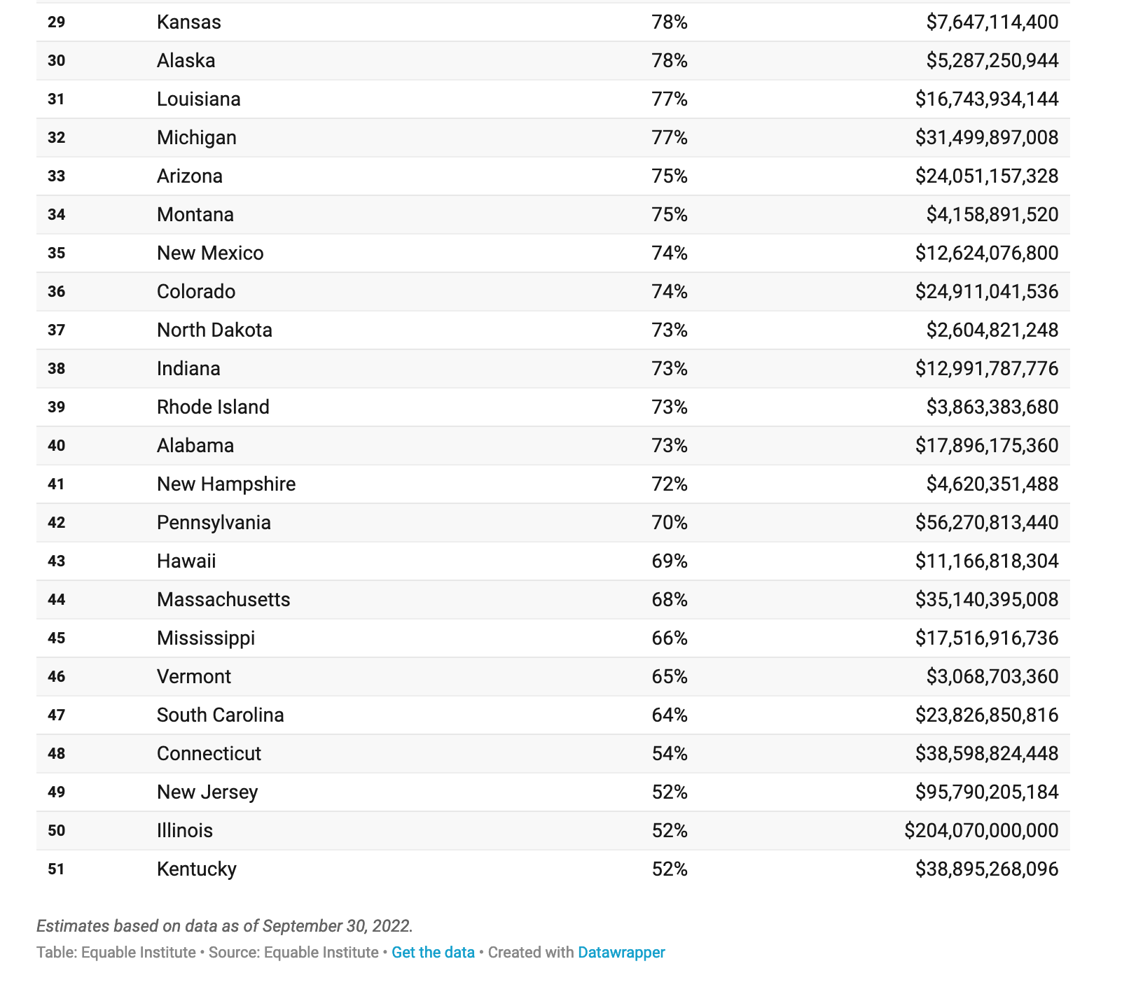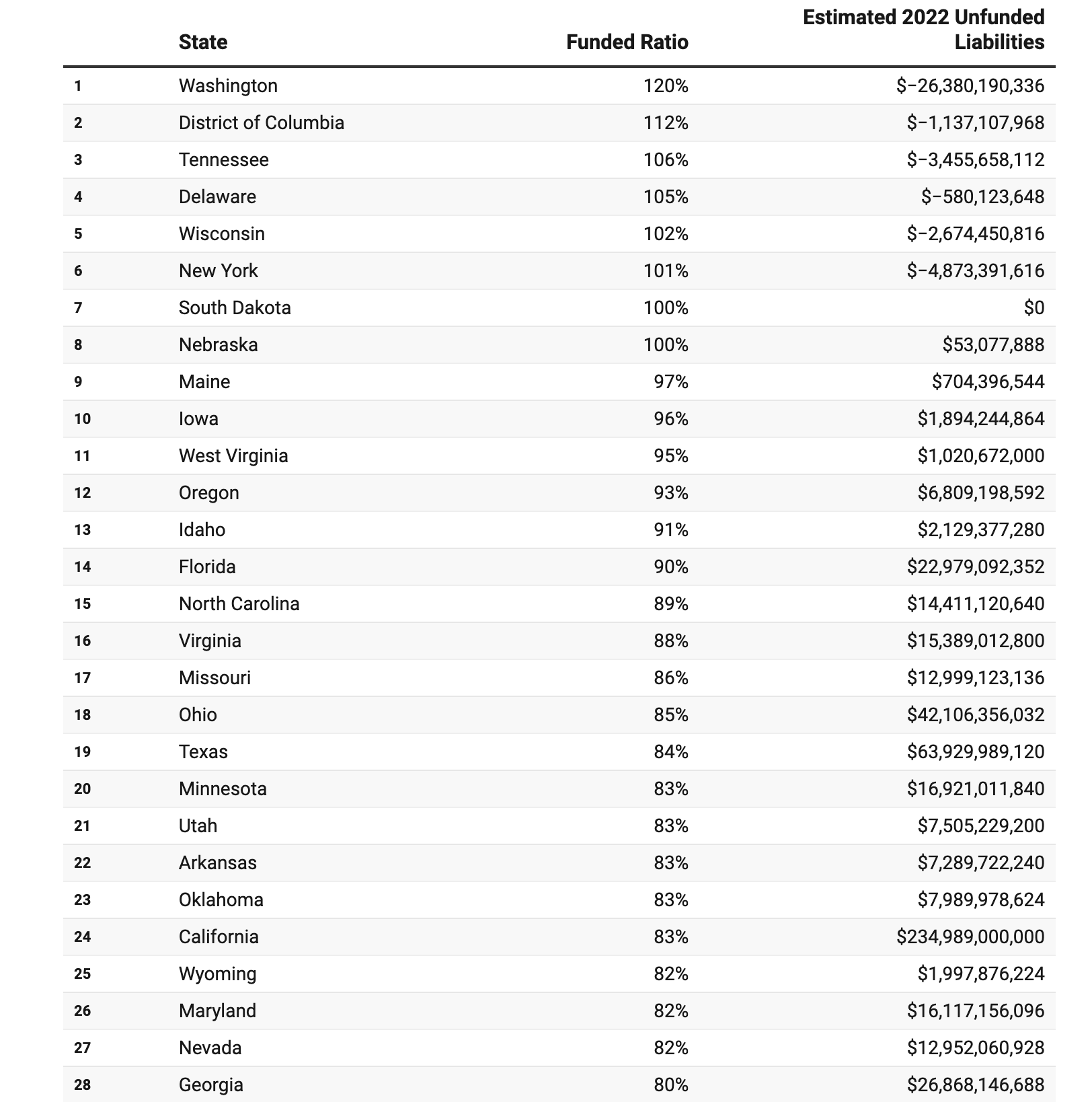 As of the end of September 2022, 43 out of 50 state pension plans were underfunded.