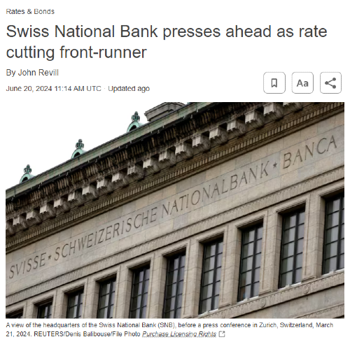 The Swiss National Bank (SNB) has reduced its main policy rate by 25 basis points to 1.25%, as reported by Reuters and the Washington Post. This comes as a continuation of the global policy easing cycle, following a similar cut in March.