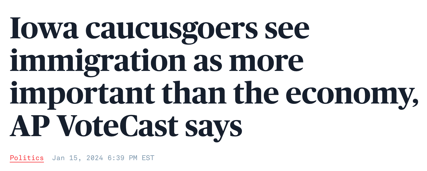 The mainstream media would like you to believe that Texas' actions are the product of a rogue state that is overstepping its boundaries. This couldn't be further from the truth. During the Iowa caucus last week voters were polled and illegal immigration was their number one concern despite the fact that it has become abundantly clear that the Common Man is struggling mightily from an economic perspective.